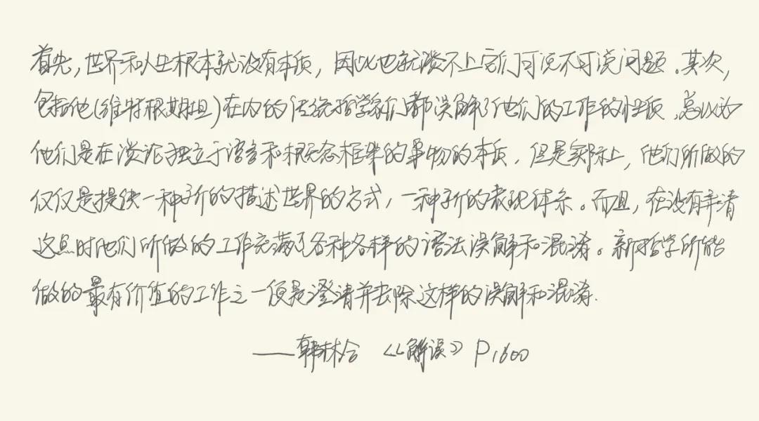 北大哲学系教授韩林合曾经在他的书【维特根斯坦哲学研究解读】里说过: