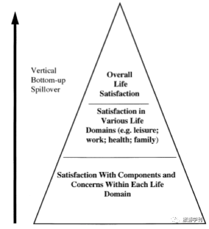 该文尝试利用幸福层次模型分析旅游活动满意度与总体生活满意度以及其他特定领域生活满意度的关系(详见下图)。研究的定量分析发现: