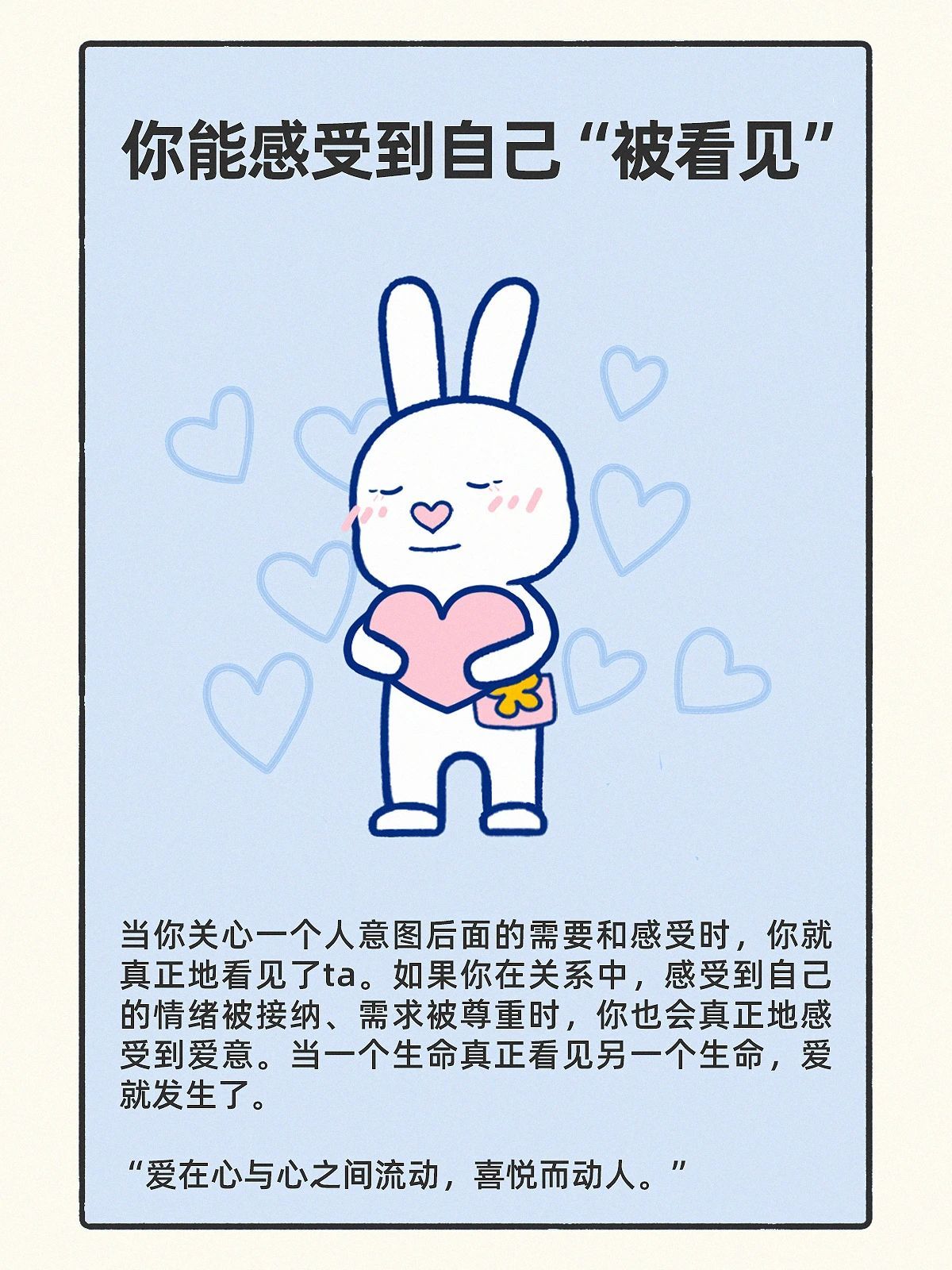 当你关心一个人意图后面的需要和感受时,你就真正地看见了ta。如果你在关系中,感受到自己的情绪被接纳、需求被尊重时,你也会真正地感受到爱意。当一个生命真正看见另一个生命,爱就发生了。