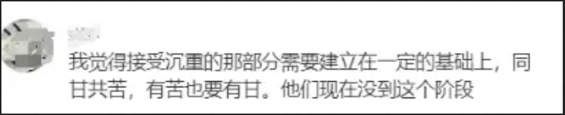 也有网友觉得,他不愿意接受宝儿的沉重面,是因为他们还没到同甘共苦的阶段。