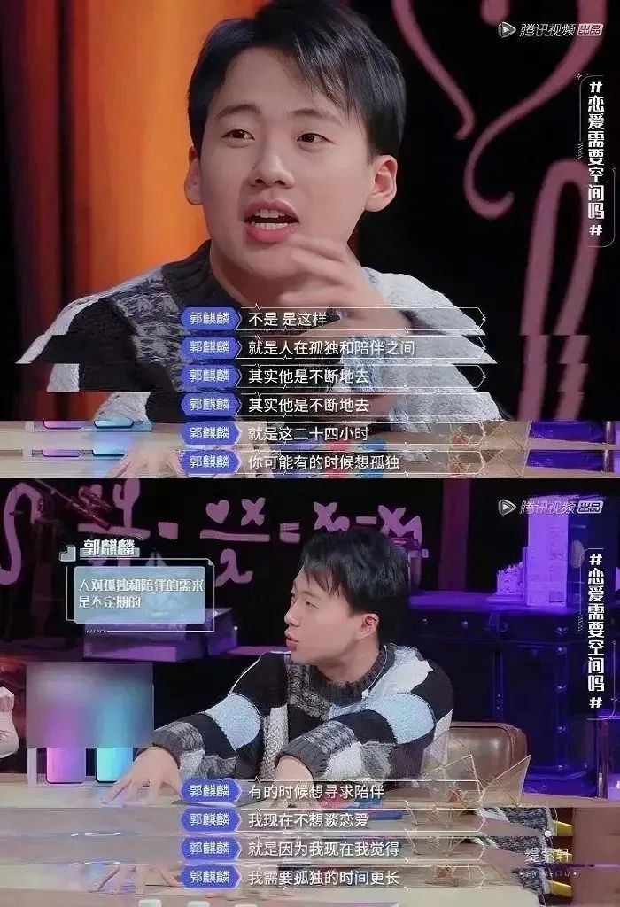 人在孤独和陪伴之间,其实是在不断地去徘徊的。就是这24小时,你可能有的时候想孤独,有的时候想寻求陪伴。我现在不想谈恋爱,我需要孤独的时间更长,我觉得自己一个人过日子很爽。等到真的什么时候特别需要陪伴,恐惧孤独,厌倦孤独的时候,那时候再去谈恋爱。