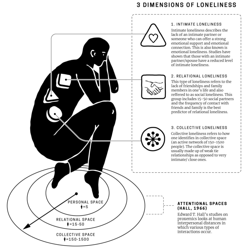 这第三个维度便是一个人对重要社会身份的感知,比如团体、学校、或国家身份(Active Network),在这其中,个人可以在集体空间和距离中与跟自己相似的人互动、联系。也许你印象中的集体生活并非美好,但它其实帮助你消化了一部分孤独。在一群同身份的人的影响下,你可以慢慢找到归属,找到停留在这的意义……