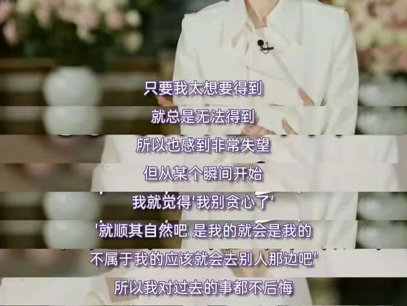 她说或许是因为,以前总会遇到想拥有什么,或者想担任什么角色的时候,因为“太想得到,却怎么都得不到”,常为此感到失望。