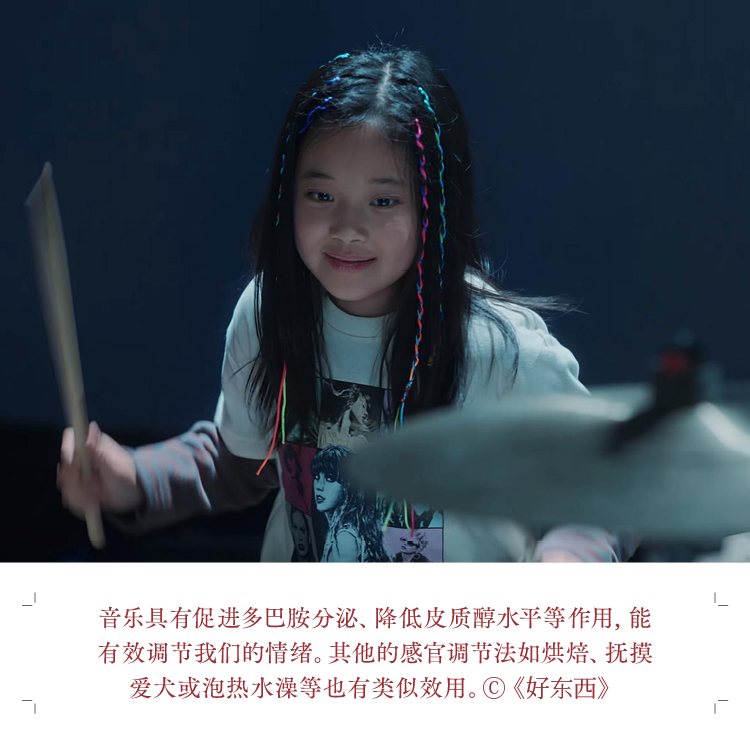其中一些情绪调节工具触手可及 —— 我们只是疏于使用。克罗斯以音乐调节情绪为例:音乐能通过多种生理途径,来调节我们的情感体验。脑部扫描结果显示,音乐能促进多巴胺(一种与大脑预期和奖励机制相关的神经递质)的分泌,并影响我们的身体应激反应,包括心率、血压及压力荷尔蒙(皮质醇)的水平等。我们可以在重要活动前聆听激昂澎湃的乐曲,来振奋自己的精神,或是在结束之后,通过更舒缓、柔和的音乐来平复放松身心。