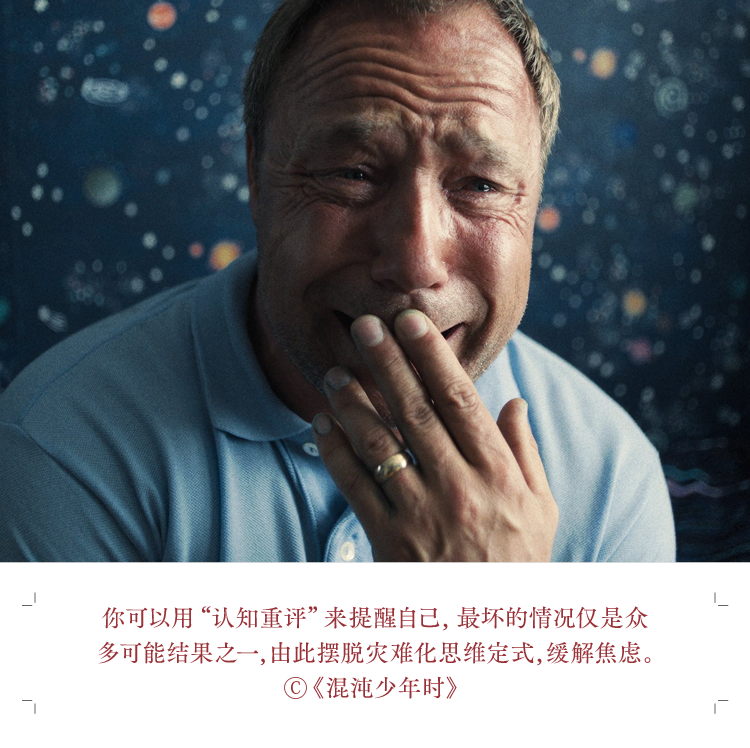 舒姆举了个例子:当你正面临一场艰难的考试,若一门心思放在可能失败的结果上,只会加剧焦虑。而运用「认知重评」策略,你可以提醒自己,最坏的情况仅是众多可能结果之一,由此来摆脱灾难化思维定式,缓解焦虑。