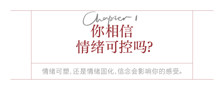 提升情绪调节能力的最大障碍,可能是一系列关于我们能否改变心智内容的深层信念 —— 在心理学中称为「内隐理论」*(Implicit Theories)。在 2000 年代中期,耶路撒冷希伯来大学(Hebrew University of Jerusalem)的玛雅 · 塔米尔(Maya Tamir)团队要求大学一年级学生按认同程度给下面 4 项陈述打分,分值 1 ~5 表示从「完全不同意」到 「完全同意」:人人都能学会控制自己的情绪;只要愿意,人们可以改变自身情绪;无论多努力,人们都无法真正改变自身情绪;事实上,人对情绪的掌控力微乎其微。其中,前两项陈述旨在反映「情绪可塑」的观点,而后两项则代表「情绪固化」的观点。