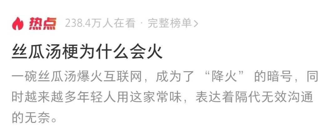 弥合代沟并不轻松,比改变他人更容易做到的是调整自己的心态,也许正是意识到这一点,「丝瓜汤」梗才会火遍全网。