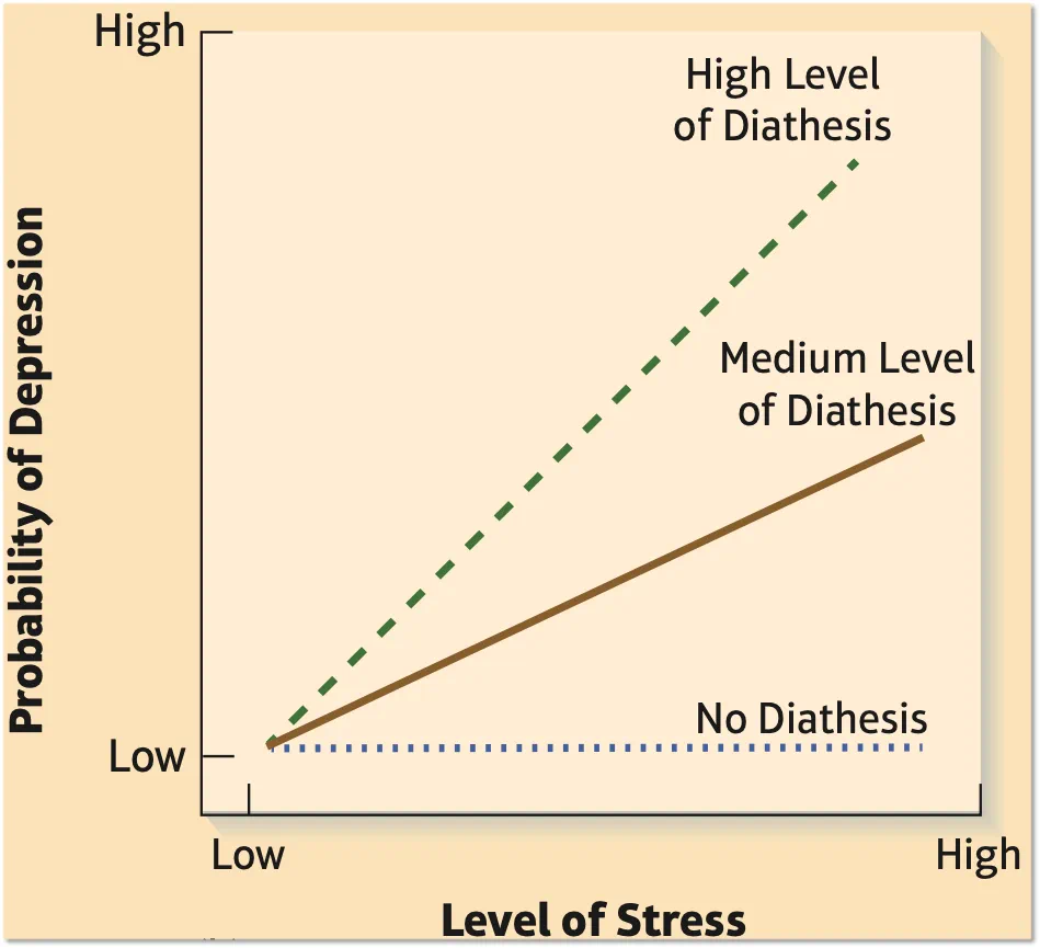 根据该理论,仅有易感因素并不足以触发抑郁反应,只有当个体的认知易感性在处于压力应激状态下被激活,才可能产生抑郁反应。