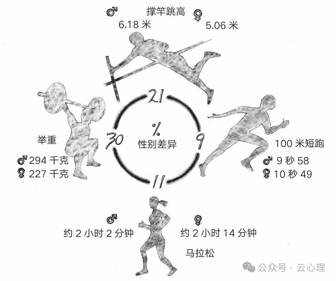 我们来看这样一组数据:中国女性比男性体重约轻13-15公斤,女性比男性身高约矮11.7厘米,男性综合力量约为女性的1.4-1.6倍。