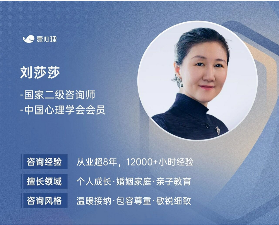 刘莎莎老师是国家二级心理咨询师、中国心理学会会员,从业时间超8年,服务时长超12000+小时。